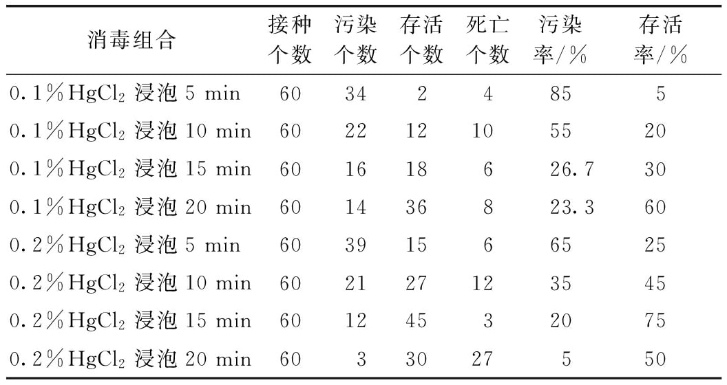 2.1 不同消毒組合對無菌苗建立的影響