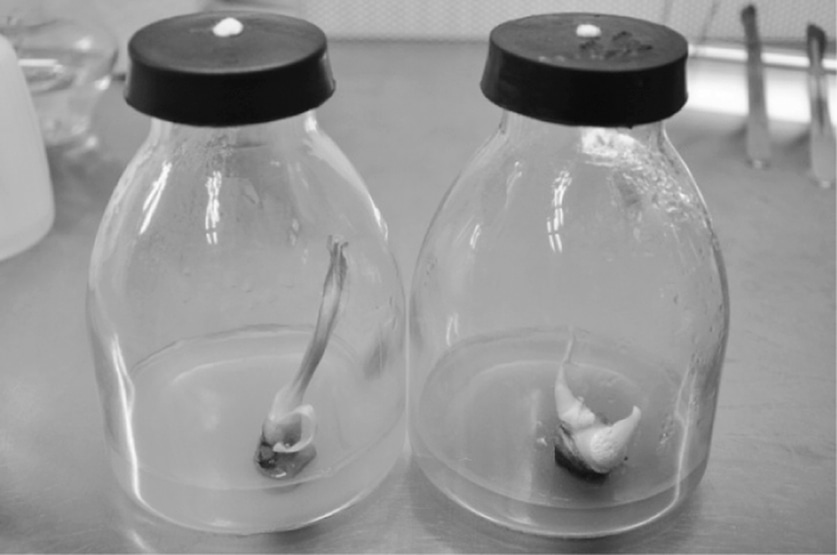 在多花黃精離體培養(yǎng)初步研究過程中發(fā)現(xiàn),福建多花黃精的無菌體系建立存在困難,在10 d后還會出現(xiàn)內(nèi)生菌,這給外植體消毒帶來難度,高濃度長時(shí)間消毒不利于外植體的存活,過低時(shí)又不能得到高存活率。究其原因,可能是因?yàn)椴牧先≡从谝吧N源,在材料本身中存在著內(nèi)生菌。另外,消毒過程中的切割也得,避免其所產(chǎn)生的黏液。